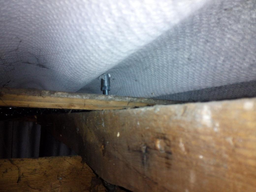 Крепежный болт проходит через раму коллектора, шифер и вкручивается в крышные перекрытие ( деревянные лаги).