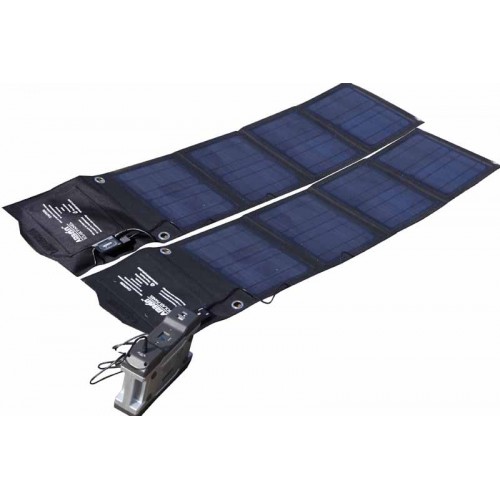 Данная система очень удобна тем, что состоит из 4 элементов и в сложенном состояние имеет очень компактный вид, но при этом обладает достаточно мощными параметрами. Солнечное зарядное устройство AM-SF28 способна заряжать не только 5V мелкие и средние гаджеты, а и, благодаря выходу DC 10-18V 1.5A, появляется возможность заряжать прожекторы, зарядное устройство Guide 10, фотоаппараты, видеокамеры и другие 12V приборы.